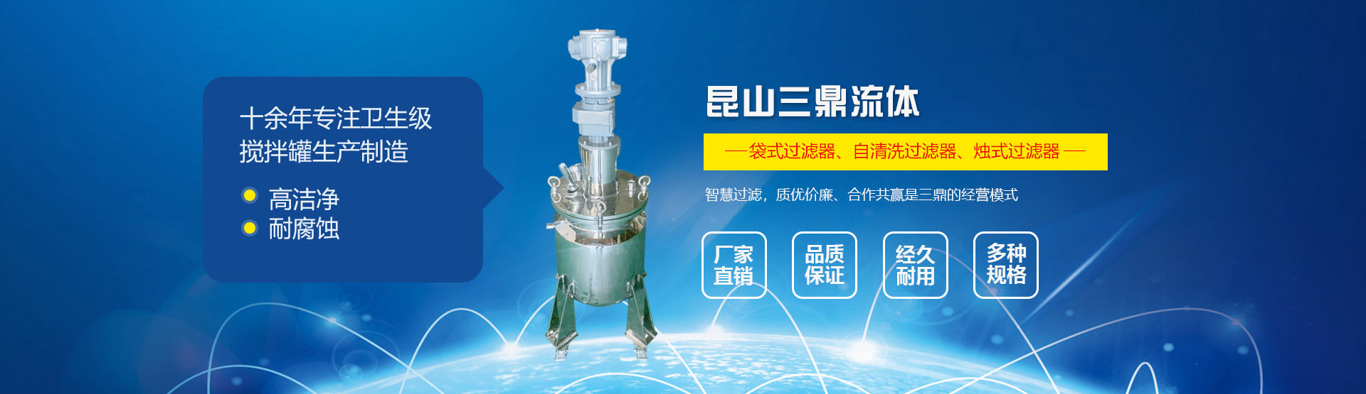 昆山三鼎流體一直在過濾分離和攪拌混合工藝上尋求優異的表現和經濟的方案服務客戶。擅長的領域是生物制藥行業,三鼎的高潔凈過濾器和攪拌罐是生物制藥生產工藝的必要選擇。智慧過濾是三鼎的技術導向,質優價廉、合作共贏是三鼎的經營模式。三鼎流體的設計工程師和生產團隊隨時恭候您的光臨!